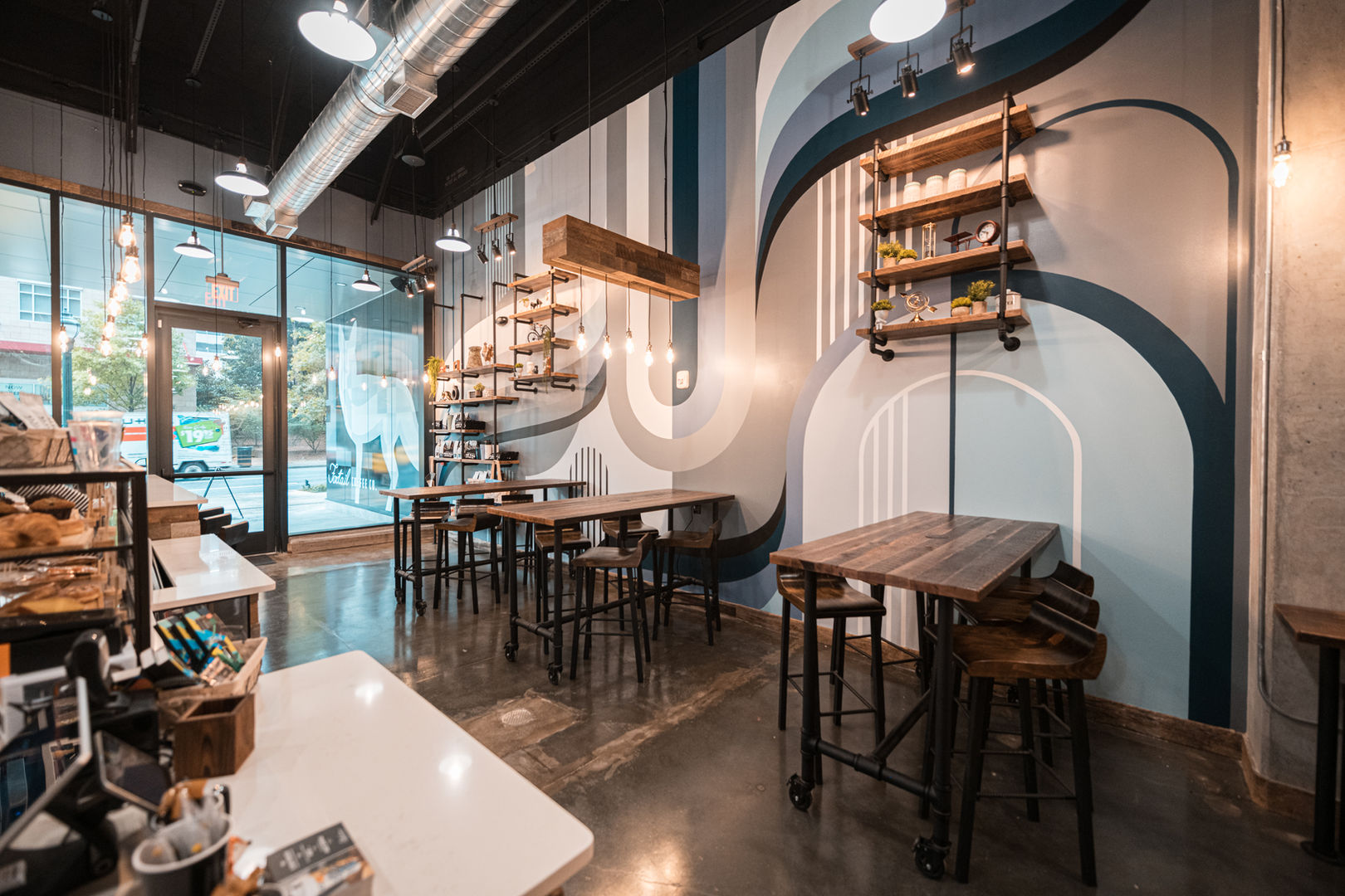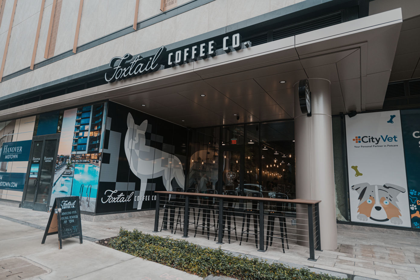 This stunning Foxtail Coffee location is located in the Hanover luxury apartment complex in Midtown, a commercial neighborhood in the heart of Atlanta known for its art and culture, museums, dining, and many parks. This is our fourth open location in Georgia and features our signature industrial yet warm design. This exciting new shop serves beer and wine, features our new Foxtail Gelato and Affogato program, and includes a large indoor and outdoor patio area. We can't wait for you to come in, grab a cup of our wide array of craft offerings, and stroll around this fantastic neighborhood!