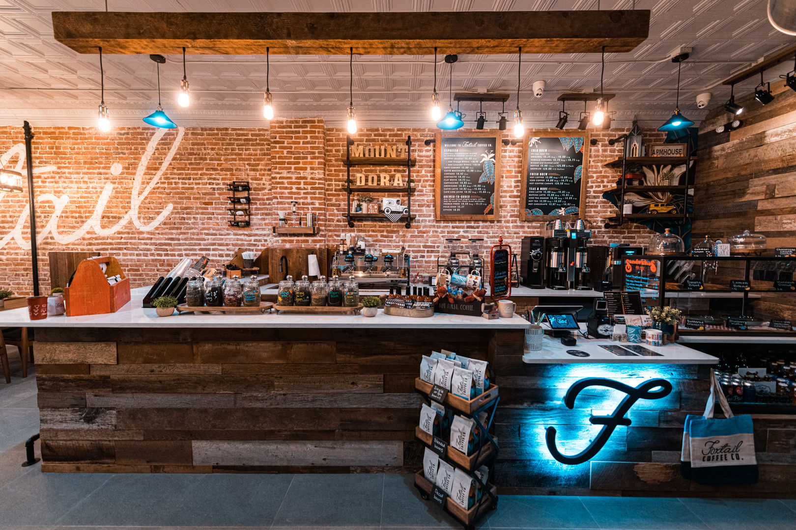 Located across from Donnelly Park in the red brick Ingram Building built in 1923, Foxtail Coffee Downtown Mount Dora pays tribute to the history of the city by preserving the original brick walls and tin ceiling while adding some modern touches, making it the perfect spot to enjoy a great coffee beverage or meet for Happy Hour.