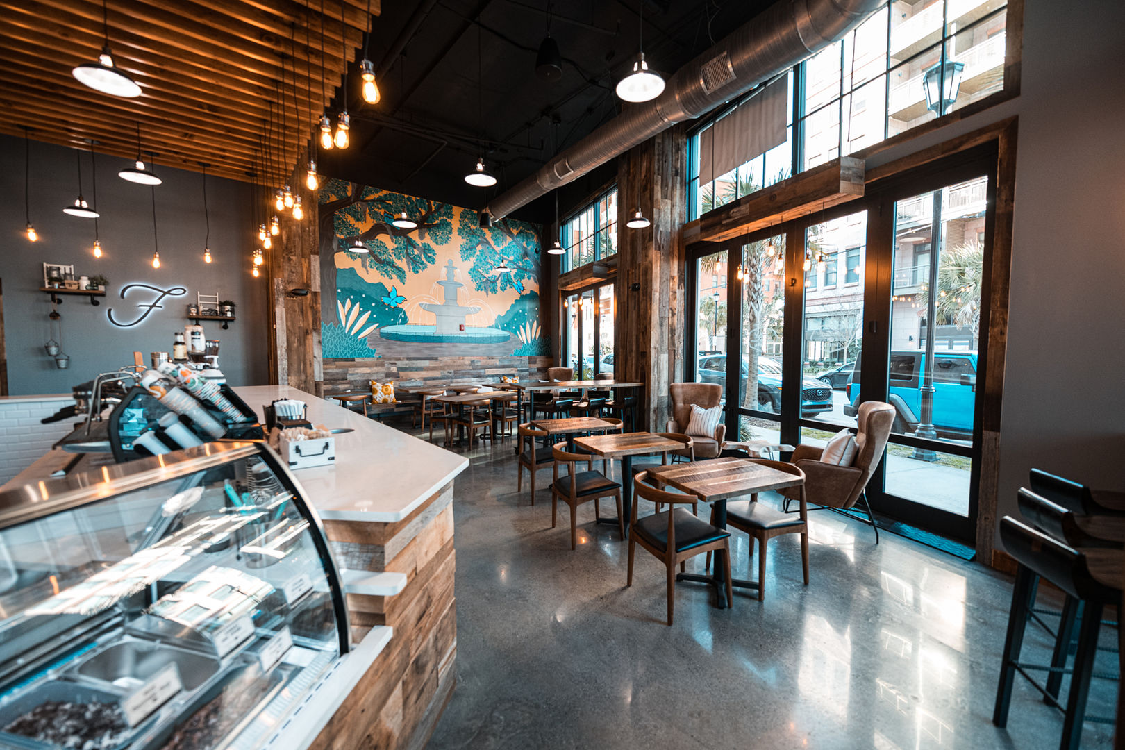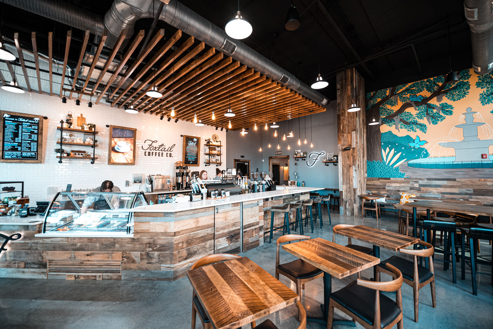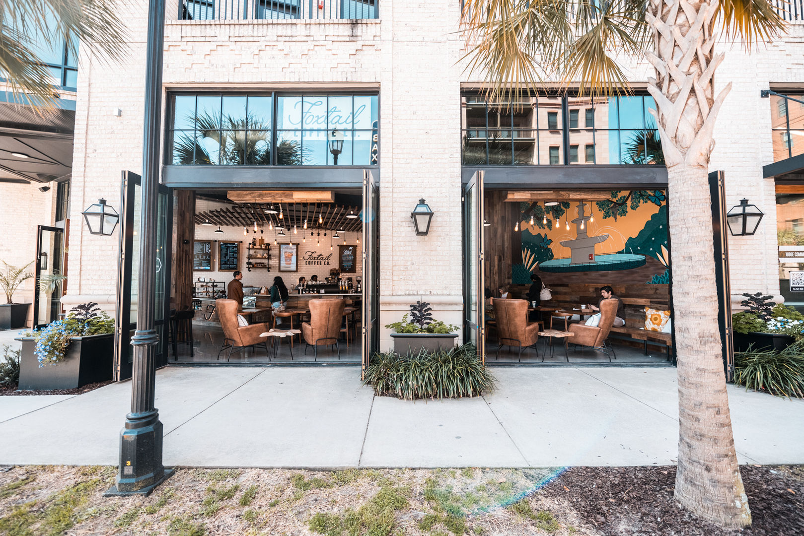 Welcome to our Foxtail Coffee in Savannah, Georgia! This gorgeous shop resides in a mixed-use commercial and residential complex called Olmstead in Riverside. It is located in the heart of the historic city of Savannah, known for its beautiful squares, architecture, and Southern charm. This exciting location serves beer and wine alongside our craft beverage and food offerings, making it the perfect stop for a cozy and elevated breakfast or an evening socializing with loved ones. This shop also features our Foxtail Gelato program, with 10 delicious flavors that complement 6 curated affogato pairings. We can't wait to give you the Foxtail family experience!