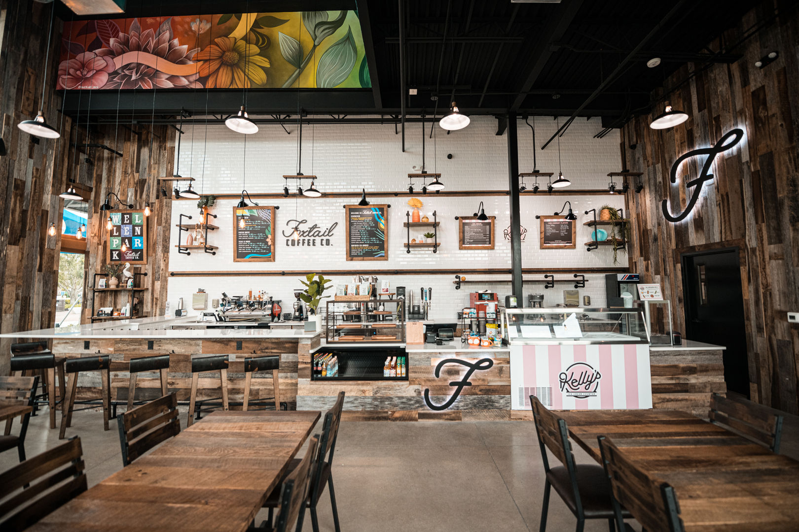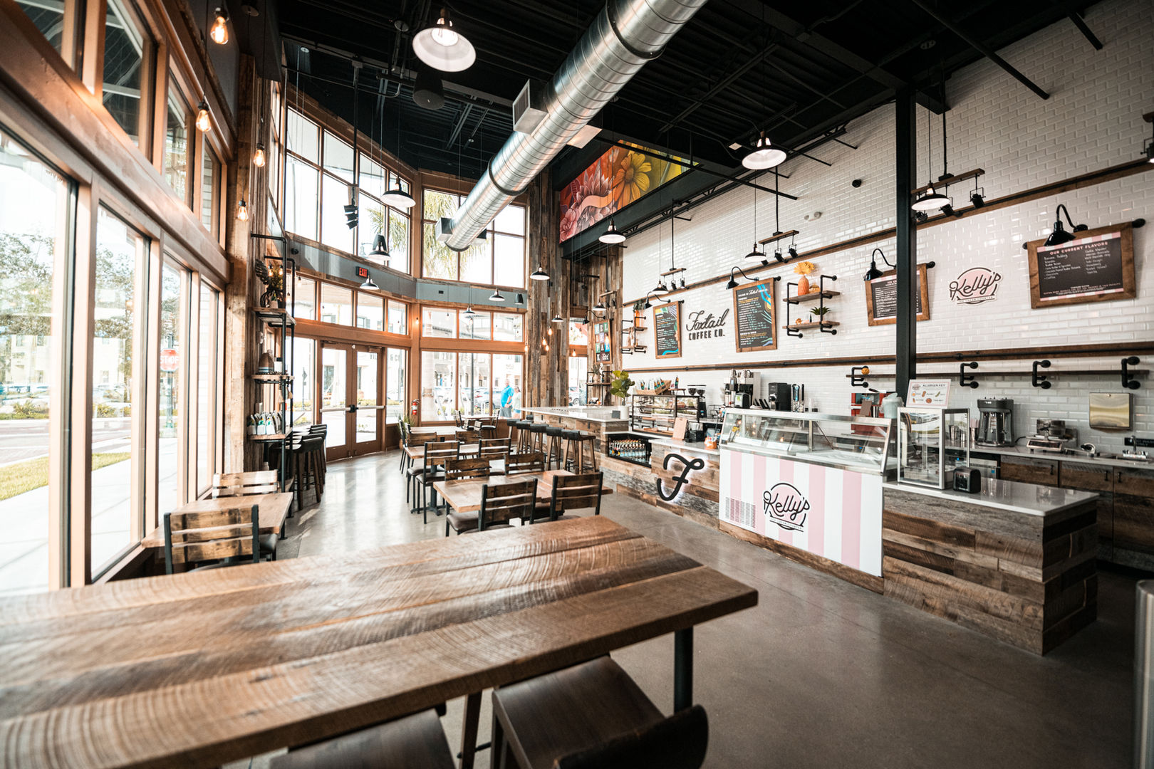 Foxtail Coffee in Wellen Park is a cozy gathering spot, with expertly crafted coffee, rustic charm, and an inviting atmosphere. This location is a haven for coffee lovers and a fostering community. Indulge in rich flavors, and unwind in a warm, friendly space or grab a Kelly's Ice Cream to go!