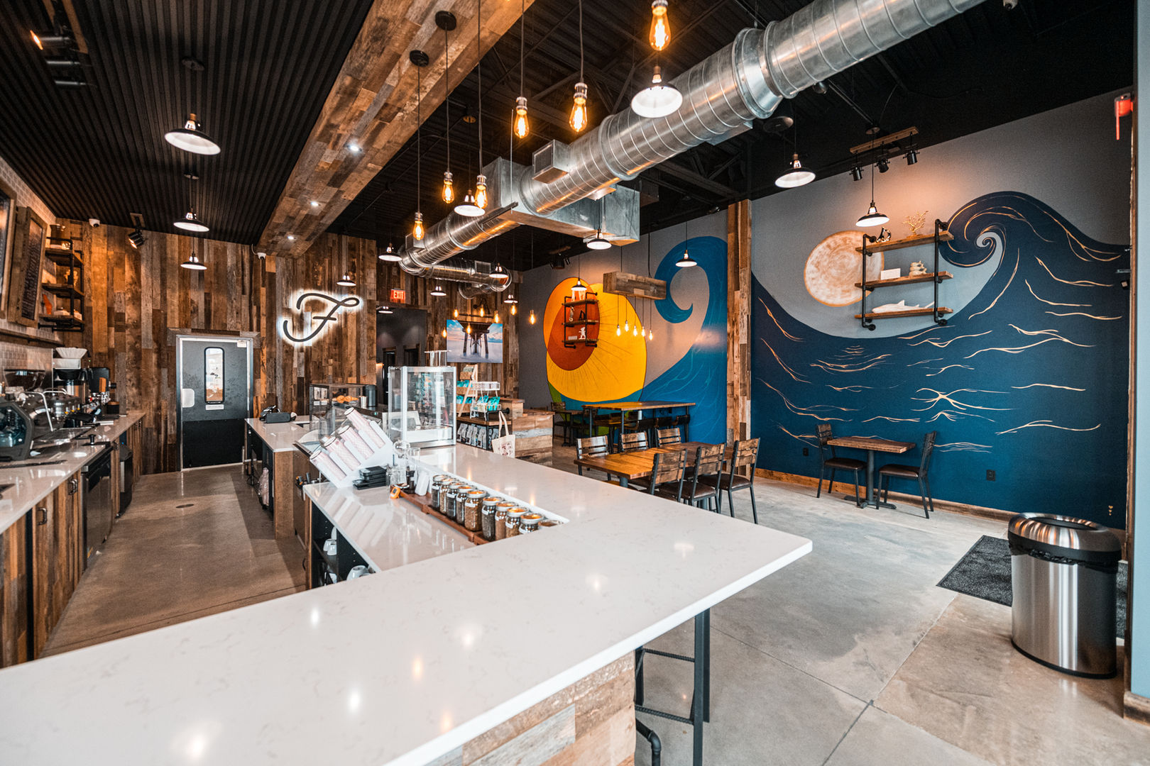 This Foxtail Coffee location is part of the spacious shopping center in Port Orange called Catfish Commons, just a mile from the beach! In addition to our wide selection of craft offerings, this location features a Kelly's homemade ice cream counter, scooping a variety of signature and rotating featured flavors, and fresh-pressed juice, a perfectly refreshing option to sip on while enjoying the coast! This shop also has a drive-thru to enjoy an on-the-go pick me up for those faster-paced days. We can't wait to welcome you in and give you the Foxtail Family experience!