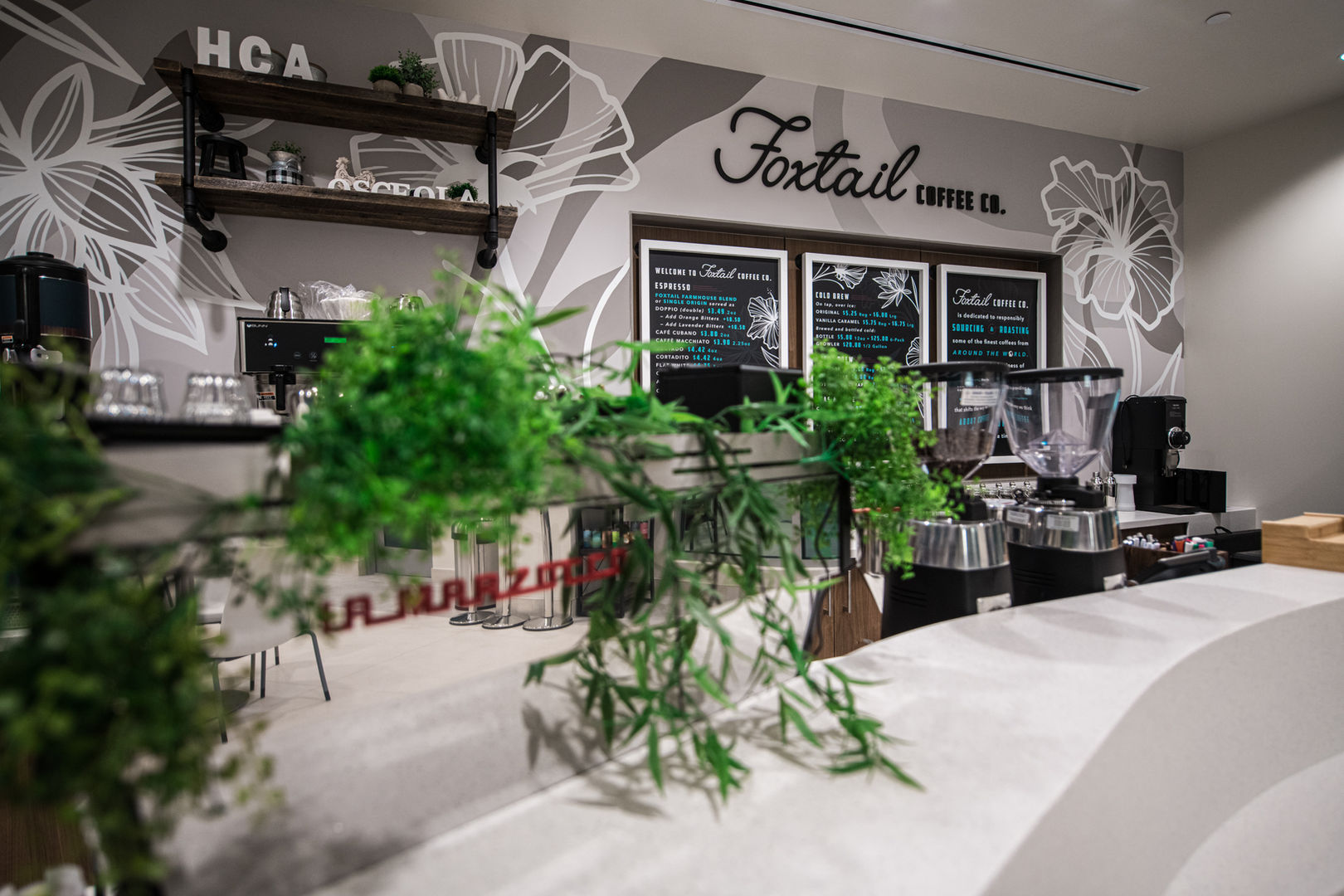 Foxtail Coffee, HCA is a café in partnership with The Hospital Corporation of America, one of the nation's leading providers of healthcare services. This cafe is located in the lobby of the HCA Osceola Hospital location and offers a full service coffee bar, grab-n-go snacks, and select pastries from our exclusive vendors.
