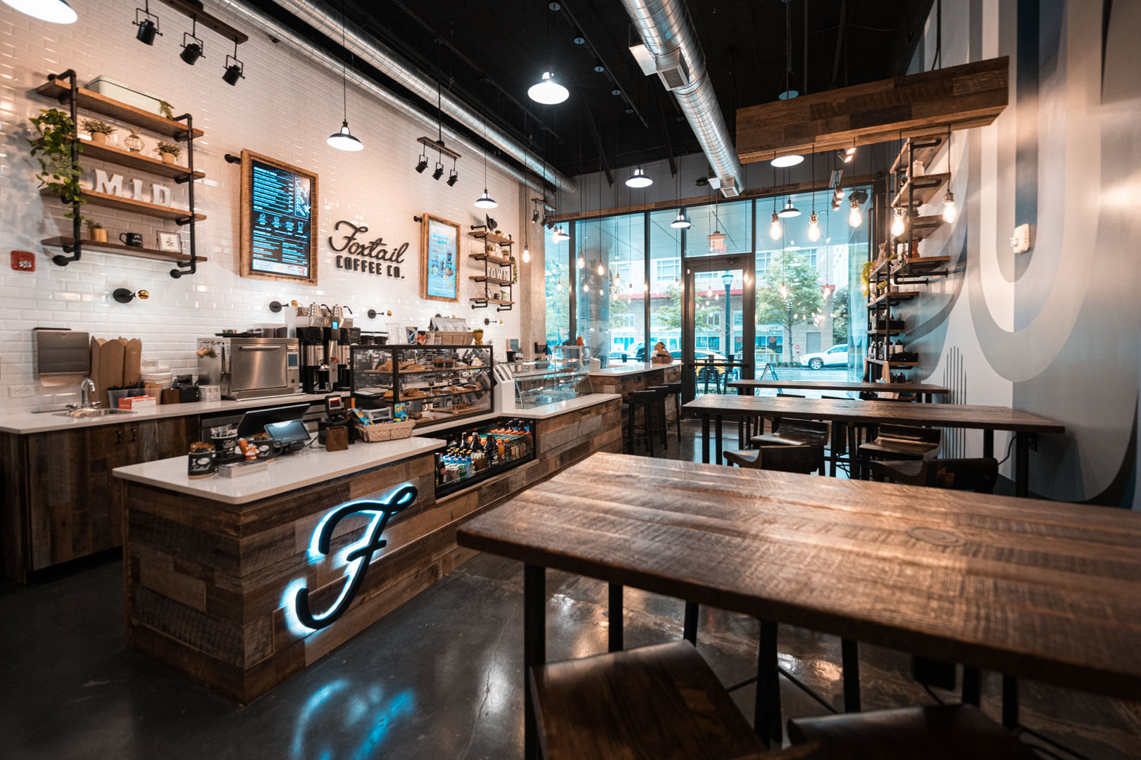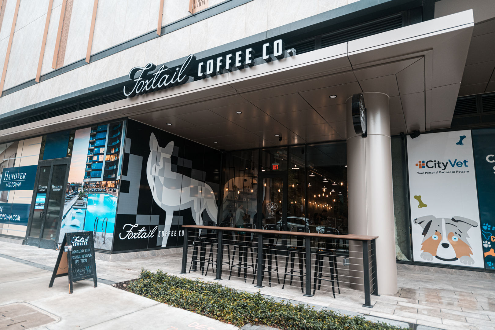 This stunning Foxtail Coffee location is located in the Hanover luxury apartment complex in Midtown, a commercial neighborhood in the heart of Atlanta known for its art and culture, museums, dining, and many parks. This is our fourth open location in Georgia and features our signature industrial yet warm design. This exciting new shop serves beer and wine, features our new Foxtail Gelato and Affogato program, and includes a large indoor and outdoor patio area. We can't wait for you to come in, grab a cup of our wide array of craft offerings, and stroll around this fantastic neighborhood!