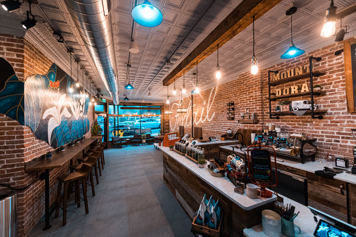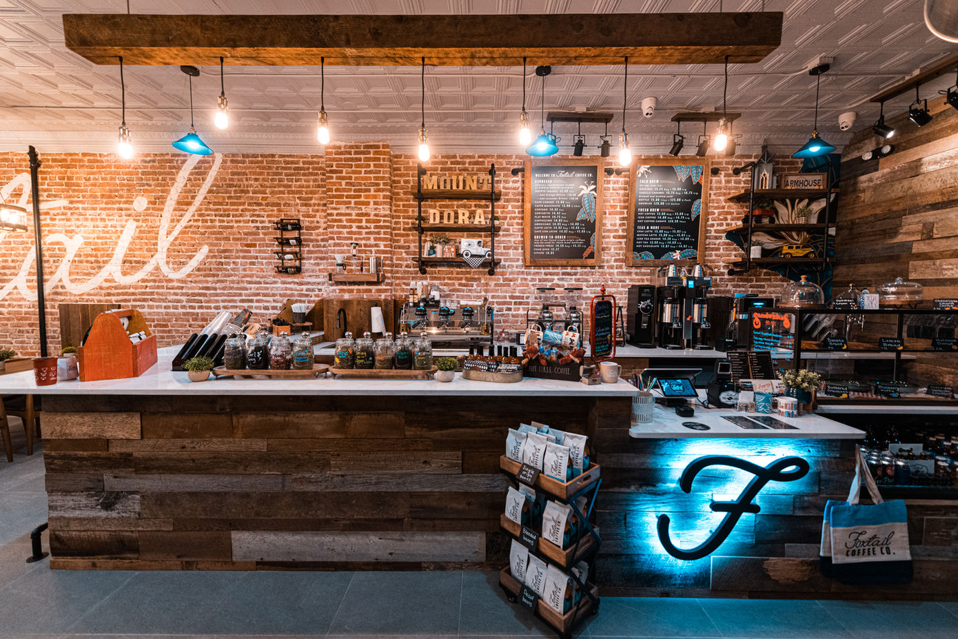 Located across from Donnelly Park in the red brick Ingram Building built in 1923, Foxtail Coffee Downtown Mount Dora pays tribute to the history of the city by preserving the original brick walls and tin ceiling while adding some modern touches, making it the perfect spot to enjoy a great coffee beverage or meet for Happy Hour.