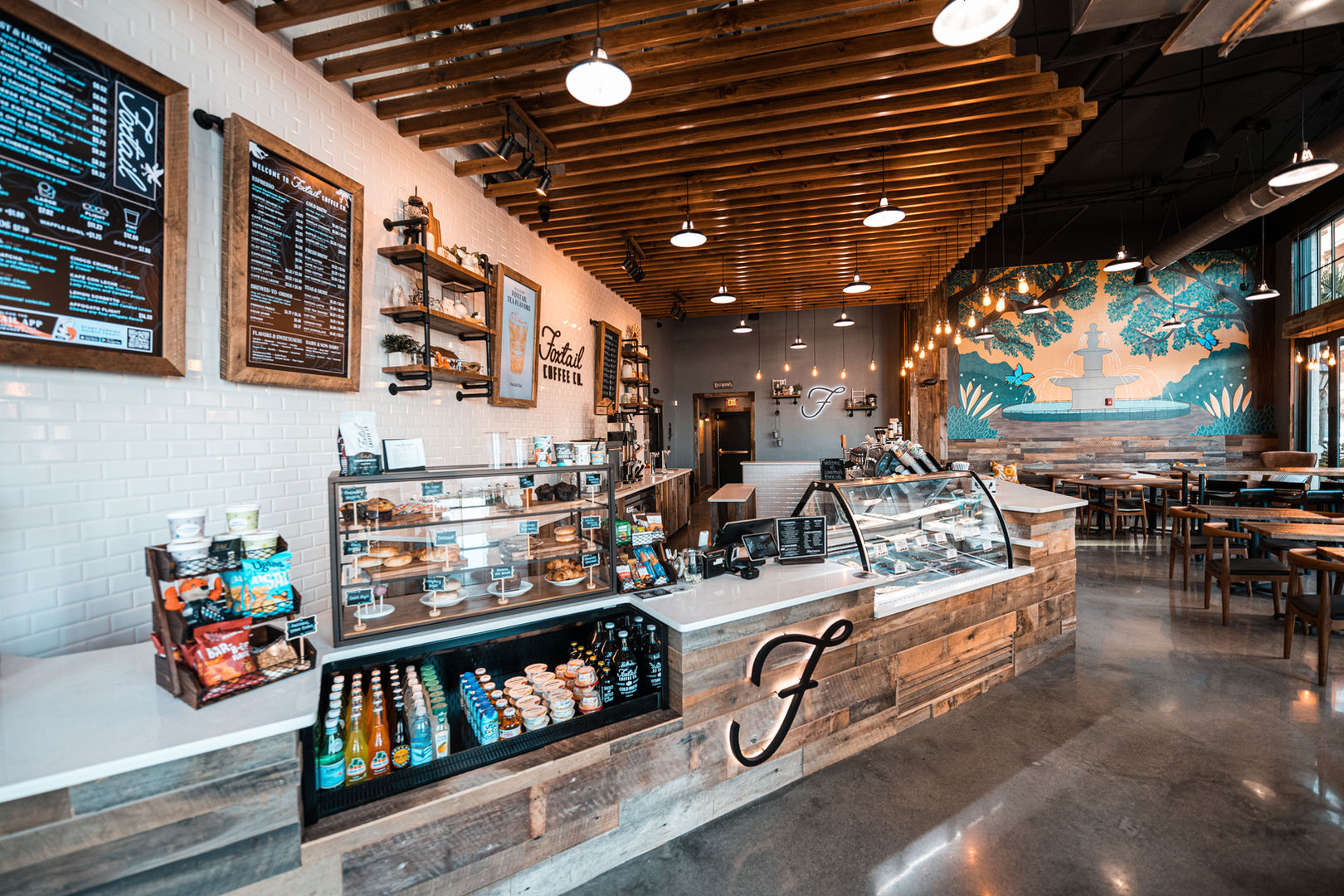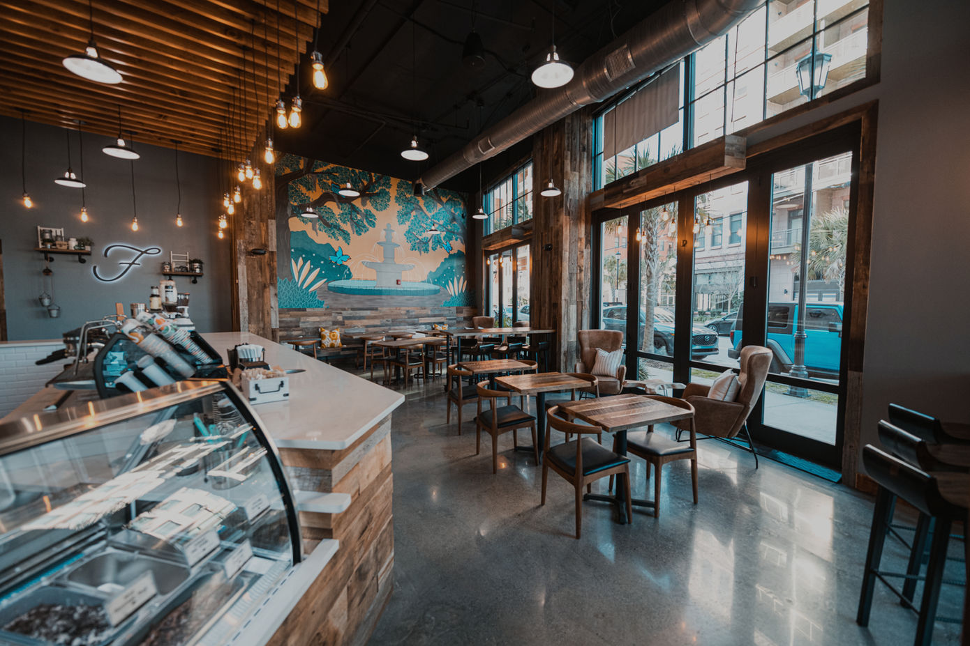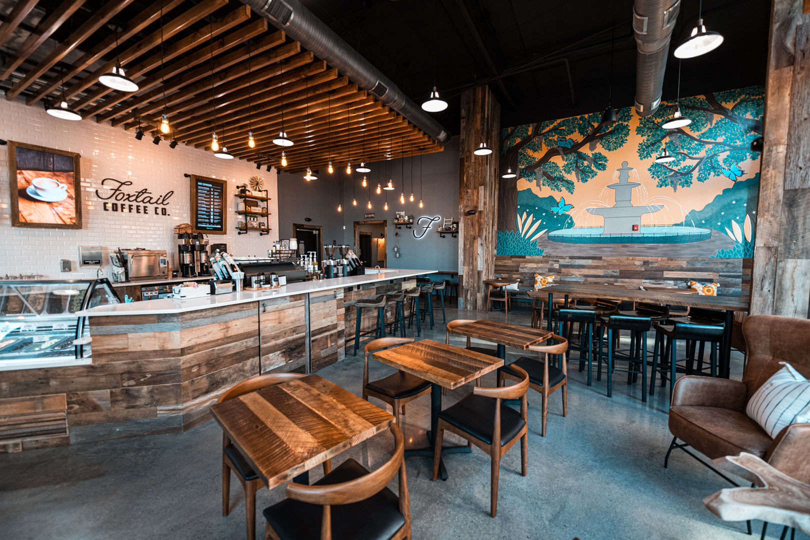 Welcome to our Foxtail Coffee in Savannah, Georgia! This gorgeous shop resides in a mixed-use commercial and residential complex called Olmstead in Riverside. It is located in the heart of the historic city of Savannah, known for its beautiful squares, architecture, and Southern charm. This exciting location serves beer and wine alongside our craft beverage and food offerings, making it the perfect stop for a cozy and elevated breakfast or an evening socializing with loved ones. This shop also features our Foxtail Gelato program, with 10 delicious flavors that complement 6 curated affogato pairings. We can't wait to give you the Foxtail family experience!