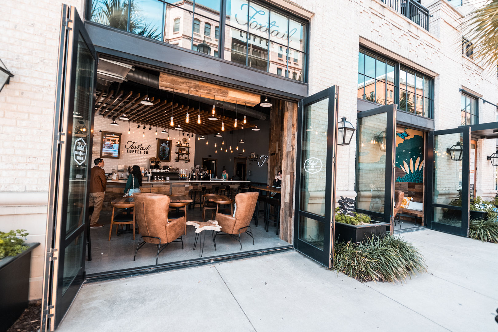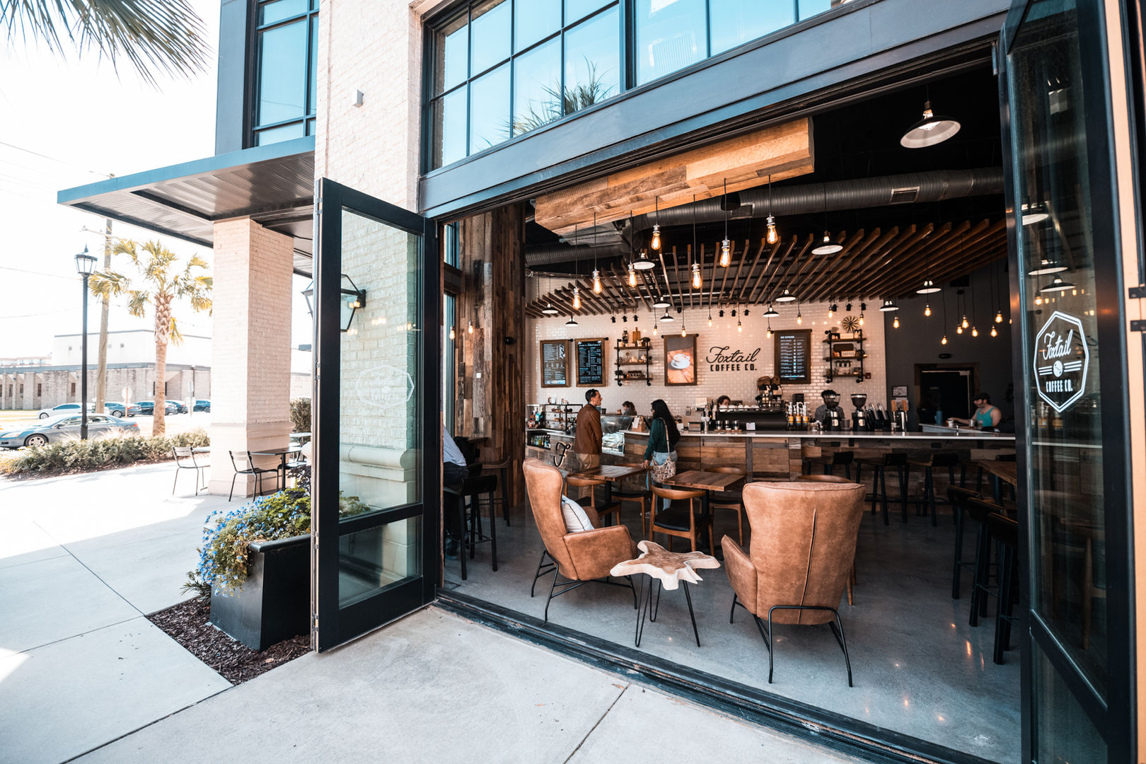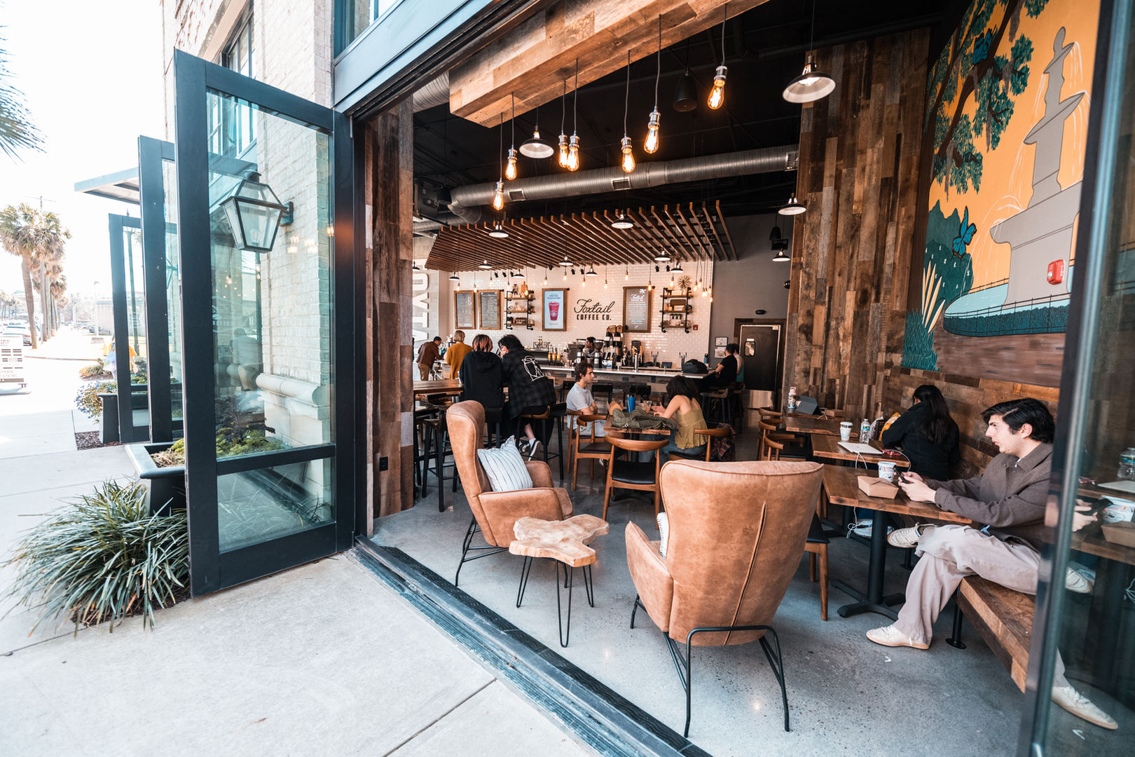 Welcome to our Foxtail Coffee in Savannah, Georgia! This gorgeous shop resides in a mixed-use commercial and residential complex called Olmstead in Riverside. It is located in the heart of the historic city of Savannah, known for its beautiful squares, architecture, and Southern charm. This exciting location serves beer and wine alongside our craft beverage and food offerings, making it the perfect stop for a cozy and elevated breakfast or an evening socializing with loved ones. This shop also features our Foxtail Gelato program, with 10 delicious flavors that complement 6 curated affogato pairings. We can't wait to give you the Foxtail family experience!